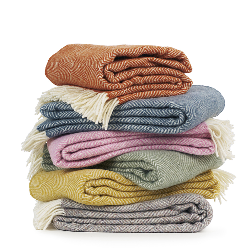 Produkterna tillverkade av återvunnen ull är något alldeles speciellt. Eftersom de skapas av ull från spill i produktionen, blir varje produktion unik. Detta innebär att vi inte kan garantera exakta färgnyanser – men det är just detta som är charmen med återvunnet material. Vilka färger som finns tillgängliga vid produktionstillfället avgör resultatet, vilket gör varje pläd helt unik. Dessutom är processen hållbar och bidrar till att minska avfall och ge materialet nytt liv.